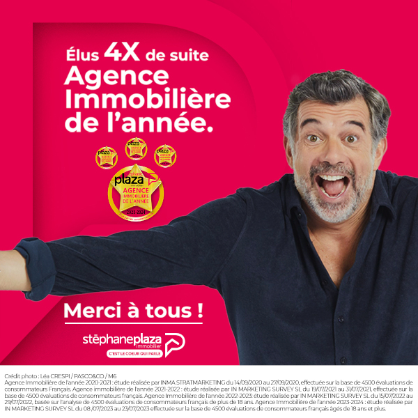 Le réseau Stéphane Plaza immobilier est élu « Agence immobilière de l'année 2023-2024 (1) » pour la 4ème année consécutive. C'est le résultat de l'enquête indépendante menée du 08/07/2023 au 23/07/2023 par IN MARKETING SURVEY auprès d'un échantillon de 4500 évaluations de consommateurs français. Cette nouvelle récompense témoigne de la confiance accordée au réseau par les Français. A travers ce trophée, franchisés et collaborateurs sont ainsi mis à l'honneur et félicités pour leur engagement quotidien dans le développement de la marque Stéphane Plaza immobilier. En effet, les équipes ont toujours à cœur d'accompagner personnellement et de co-construire les projets de vie de leurs clients.