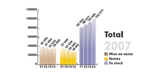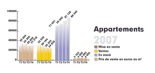 - 6 424€ le m² sur Paris en janvier 2008 (contre 6 387€ en décembre, soit une hausse de 0,6%. Hausse de 6% sur un an, avec un m² à 6 053€ en janvier 2007).