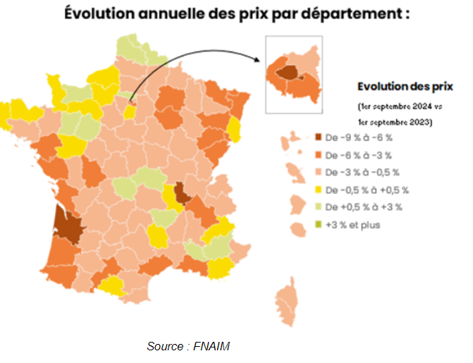 La quasi-totalité des départements connaissent une baisse des prix.