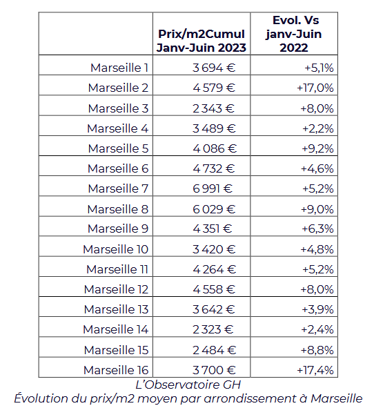Il est intéressant de noter qu’à Marseille, deux marchés se distinguent : les arrondissements « extérieurs », aux prix plus mesurés et qui enregistrent des hausses importantes, et ensuite les arrondissements « intérieurs » ou le long de la Corniche Kennedy, dont les valeurs sont historiquement élevées, qui enregistrent (pour certains d’entre eux) des hausses de prix plus mesurées.