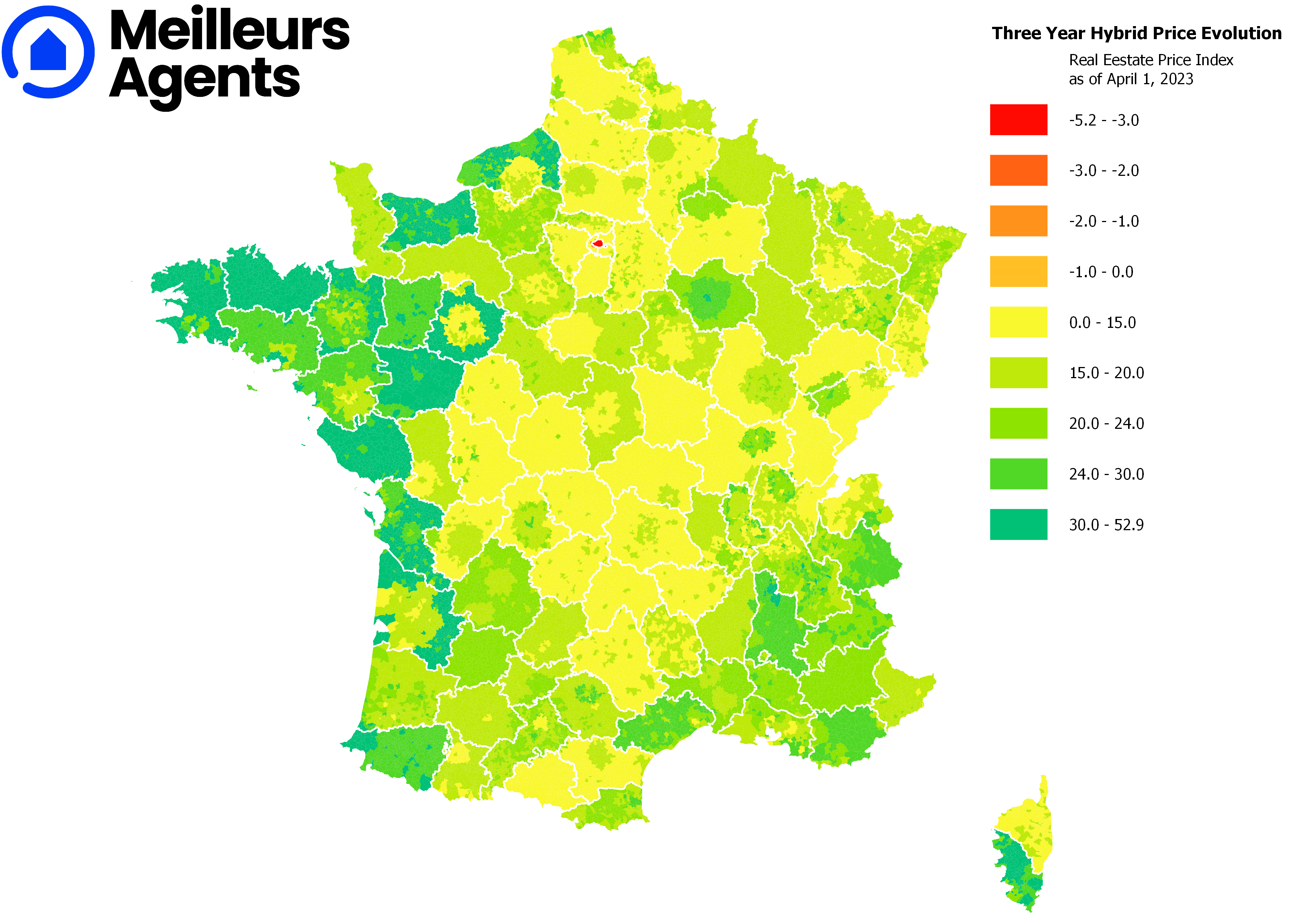 Depuis sa création en 2008, Meilleurs Agents n’a eu de cesse d’innover pour fournir la meilleure information possible et éclairer les Français sur le marché immobilier. Depuis début avril, Meilleurs Agents décrypte désormais, grâce à la construction de nouveaux indices, la réalité immobilière de chaque territoire, qu’il s’agisse des 36 000 communes de France ou même des quartiers des 50 plus grandes villes.