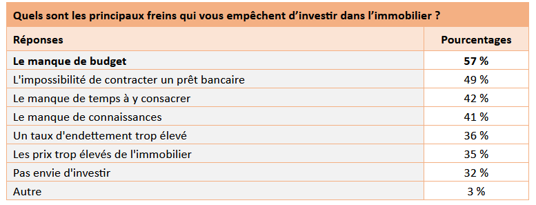 N°1 : le manque de budget pour 57 % des Français