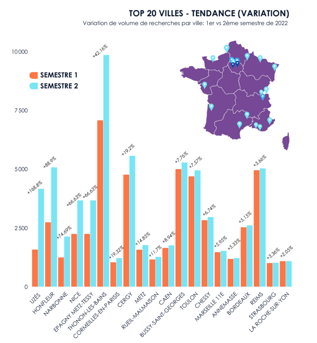 Expert de l’immobilier neuf avec sa place de marché B2B mettant en relation promoteurs et prescripteurs, Valorissimo a mené une étude[1] pour connaître les tendances du marché. En 2022, dans quelles villes se sont concentrées les recherches de logements neufs ? Quels constats Valorissimo dresse-t-il de ces évolutions ?