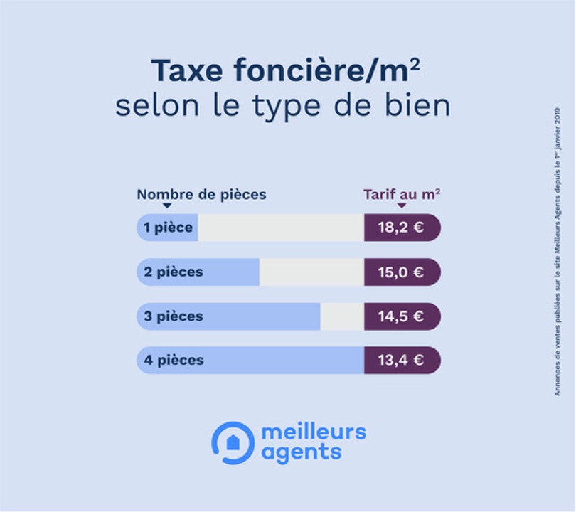 En moyenne, la taxe foncière est 36% plus importante pour un studio versus un T4